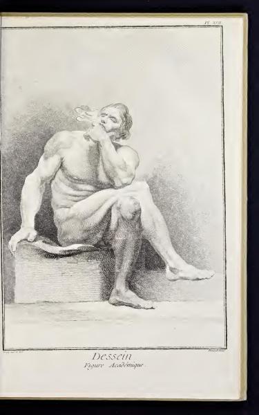 DrawingAcademic Figure. Page Summary: The text is a title in French, translating to 'Drawing, Academic Figure.' This indicates it's an academic illustration of a nude figure from a book published in 1777 by Charles Nicolas Cochin. << Go to previous page Go to Beginning of this Book Go to Index of this Book's pages Go to list of Books Go to next page >>