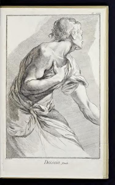 Plate XXXI.Design, Study. Page Summary: This is a plate titled 'Design, Study' from a book published in 1777. It features a classical style drawing focusing on human anatomy and drapery. The plate is listed as number thirty-one in the collection. << Go to previous page Go to Beginning of this Book Go to Index of this Book's pages Go to list of Books Go to next page >>