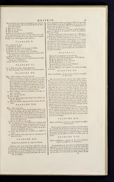 The text is a detailed guide to drawing and understanding human anatomy. Various plates illustrate different parts of the body in different views, including faces, mouths, noses, hands, and feet, providing instruction on proportion and foreshortening. The work includes references to notable artists like Raphael and was aimed at teaching drawing techniques and concepts.