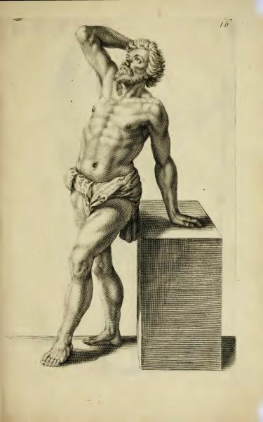 The image shows the number "16" and features a detailed illustration of a male figure in a classic artistic pose. The illustration is likely intended for anatomical study and drawing practice, emphasizing muscle detail and body posture.