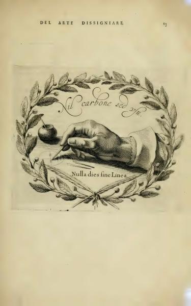 The phrase "Nil carbone sed usu" is Latin and suggests that skill is achieved through practice rather than just using basic tools. "Nulla dies sine linea" is a Latin saying meaning "No day without a line," emphasizing the importance of regular practice.
