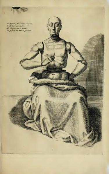 The text provides different translations for a wooden mannequin used for artistic studies. It refers to the model as both a machine and a representation of the human form. This mannequin serves as a foundational tool for understanding human anatomy in art.