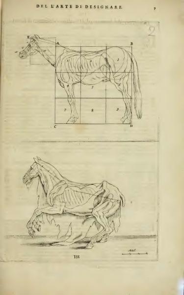 On the Art of Drawing. Page Summary: The text is the title of a section, 'On the Art of Drawing.' It prefaces detailed illustrations that aim to teach drawing techniques by studying the anatomy of horses. The page is from a historic book dedicated to artistic education. << Go to previous page Go to Beginning of this Book Go to Index of this Book's pages Go to list of Books Go to next page >>