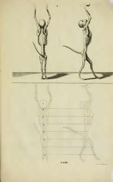 The image contains anatomical illustrations showing skeletal figures in various poses with minimal text present. The page appears to be from an instructional guide related to drawing or understanding human anatomy, aiding in artistic representation.