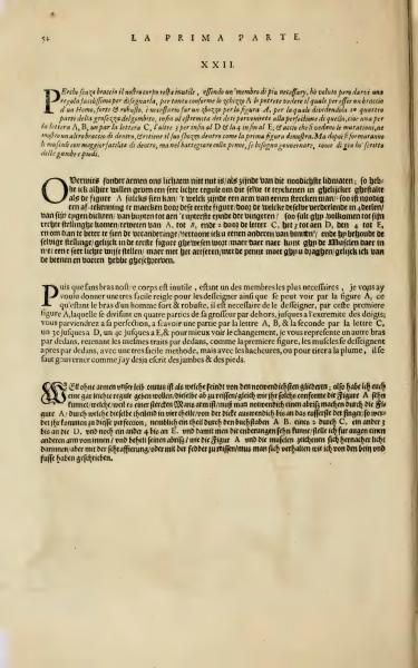Because without an arm, our body is completely useless, being a very necessary limb, I wanted to give you an extremely simple rule to draw it. As you can see in sketch A, which represents the arm of a strong and robust man, it is necessary to sketch it by dividing it into four parts from the size of the elbow, thus achieving perfection, i.e., each section labeled by the letters A, B, C, and D, with a final section at E. This way, alterations can be seen by sketching another arm on the inside like the first figure shows. After drawing it, forming the muscles inside is very easy, but when shading with the pen, you must be cautious, as I have already described for the legs and feet.
