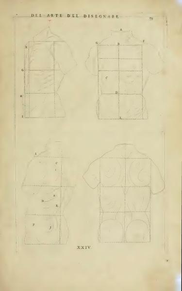 The text at the top of the page translates as "Of the Art of Drawing." It appears to be a reference or title to what the instructional images below are about. The number at the bottom is '24,' likely indicating a page or section number.