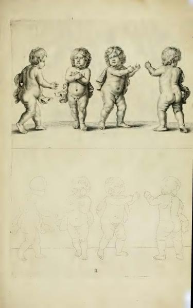 II Page Summary: The page contains a numeral 'II' and features artistic representations of cherubic figures. The top half shows completed illustrations while the bottom half provides dotted outlines for instructional purposes. << Go to previous page Go to Beginning of this Book Go to Index of this Book's pages Go to list of Books Go to next page >>