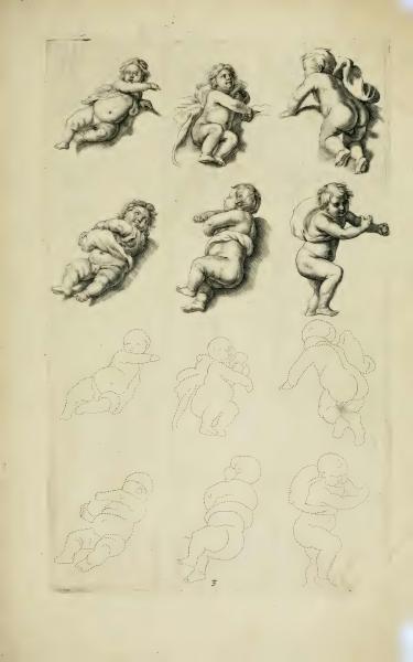 The page mainly contains artistic illustrations of cherub-like figures with minimal text. It does not include much textual content except for the small number '3' at the bottom. The illustrations likely serve as examples or exercises in drawing these figures.