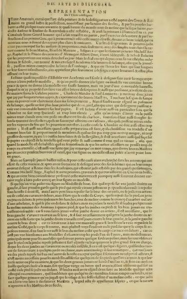 I have conceived to establish an Academy or School of drawing without having a clear experience of the model, and by giving the figure or model a certain grace through suitable lamplight, without making an unsuitable figure. I have proposed to make a rather brief description of it, since no one has written about this material since the famous painter Charles de Mander and Paolo Lomazzo. I will therefore relate what I have learned and experimented with through frequentation of brave Masters. Touching upon the manner of using the lamp, you can clearly see this in my first folio, but care must be taken with the lamp to be hung no higher than 12 feet, ensuring those who draw can get suitable light on their paper. It is necessary to have a suitable studio that is not too spacious or high, so in winter when it rains you can have a better coal stove or charcoal heater. Likewise, it is also necessary that the studio be properly prepared, choosing a model of a well-proportioned man who is neither too obese nor too thin, having well-shaped thighs and nice legs, and it is also necessary that the model help the posing.