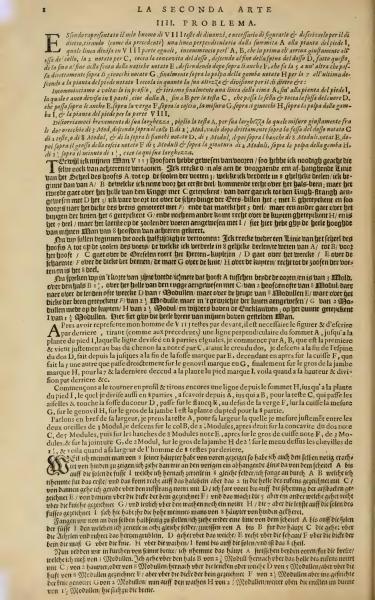 The text presents instructions for drawing the human figure using classical proportions. It discusses depicting a person from both the front and back, involving drawing perpendicular lines for accuracy. This text includes translations in Dutch and French, emphasizing the eight-heads technique for human proportions.