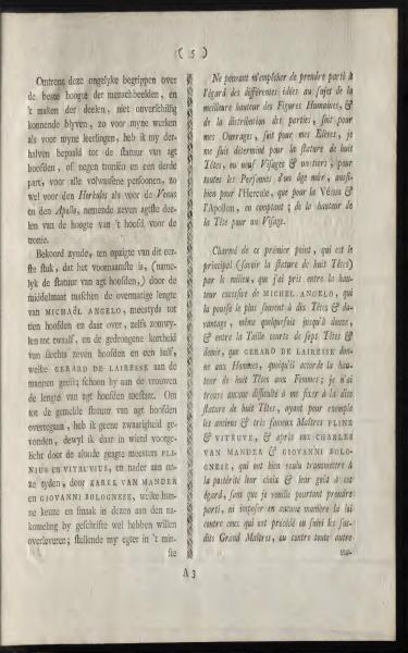 Being charmed by this primary point, namely the stature of eight heads, I was influenced by the extreme length of Michelangelo, often measuring ten heads or more, sometimes even twelve, and the compressed shortness of just seven and a half heads which Gerard de Lairesse attributes to men; though he allows the length of eight heads for women. Adopting the stature of eight heads posed no difficulty for me; I was guided by esteemed ancient masters such as Pliny and Vitruvius, and more recently, by Karel van Mander and Giovanni Bolognese, who wished to pass on their choice and taste to descendants through writing; although I set my mind accordingly, in no way do I intend…