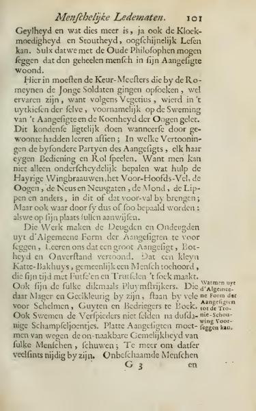- "Menschfelyke Ledematen" refers to "human limbs," but more figuratively it concerns the expressions of character seen in someone's facial features.