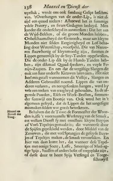 Besides, the tongue is the master of speech, the primary tool for taste, for which it is made with countless small ducts or sensory nipples; which, when stimulated by food, cause the taste sensation through the nerves that create these small projections. Hence when these projections are coated or covered with some sweet, tasteless, greasy, or floury food, sauces, or something else, or if they are scorched and shriveled by hot food: