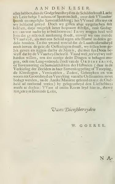 If you have any learning or interest in painting and the divine arts, you may find amusement or criticism in these surprising statements and uneven arrangements; the Word is expressed and we have said it. However, if after your laughter you feel inclined, you might better consider our thoughts more closely: And we may very well say that you do nothing inaccurately while we hold firm with the truth, as a shield against all blame that might arise. Should anyone think that pride surpasses the guided exercises, we shall agree with them and say that they are the person who proves by their actions that they value the truth. Farewell; while we wish to persevere, in pleasing you with some of these things, also our long-completed book on the Ordering and Organization of Histories (wherein the choice of images in their arrangements or gatherings, clothing, embellishments, customs, usages, and what must be considered for the grandeur and enrichment of all ordinances, learned in the antique manner and from antiquity, which shall be disclosed over time) to share with enthusiasts as opportunity permits: For all our fame is based here, that we may be your beloved reader,