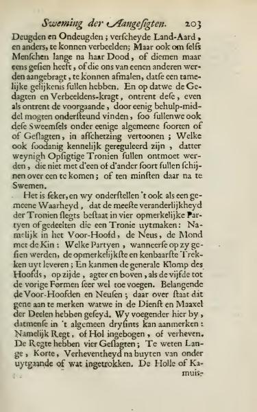 Virtues and Vices; various National Characters, and others, to be able to depict; But also to portray even People long after their Death, or those one has seen only once; or those brought to us by others, to be able to paint them, so that they have a reasonable resemblance. And so that we may find support for our Thoughts and Imaginative Power concerning these, just as concerning those mentioned earlier, we shall also categorize these Impressions into some general kinds or Classes, to show in sketches; Which are regulated in such a manner, that few Peculiar Faces will be found, that do not seem to match one or another kind; or at least appear similar to them.