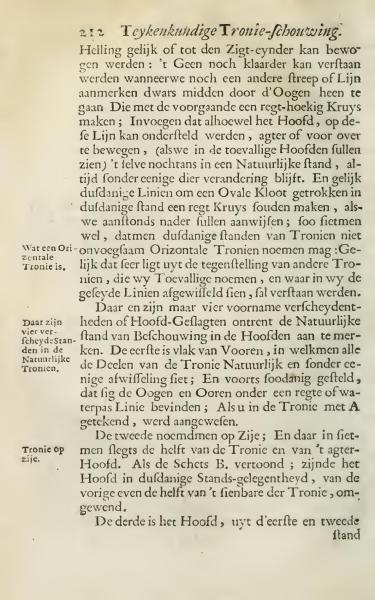 There are only four main positions of Head-Formations regarding the Natural view to be observed in the Heads. The first is a frontal view, in which all parts of the Face naturally and without any alternation can be seen; And furthermore positioned so that the Eyes and Ears lie along a straight horizontal Line; As indicated with A in the Face.