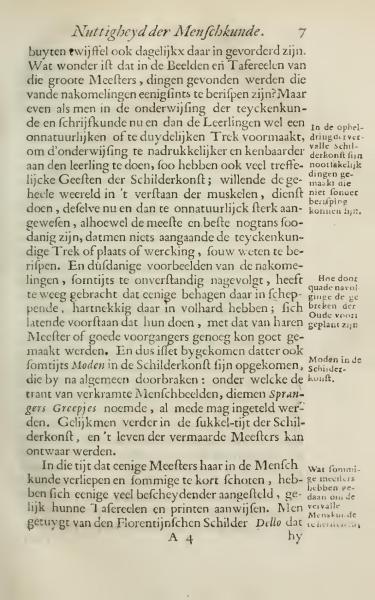 It is undoubtedly continually progressed in this field. What wonder is it that in the Images and Scenes of the great Masters, things were found that might be criticized by descendants? But just as in the teaching of drawing and crafts, instructors sometimes present students with an unnatural or overly explicit trait or stroke to make teaching more distinct and noticeable, similarly, many brilliant minds of the art of painting wanted to serve the whole world in understanding muscles. At times they demonstrated these in an unnaturally strong manner, although most were subtle enough that one would discern nothing regarding the artistic style or place of action. Such examples from successors, sometimes followed unreasonably, have led to some delighting in creating, stubbornly persisting in it, claiming their work together with that of their masters or good predecessors could be deemed fine. As a result, sometimes styles in painting emerged, breaking through generally, among which the manner of strained human images called 'Sprangers Grips' was included.
