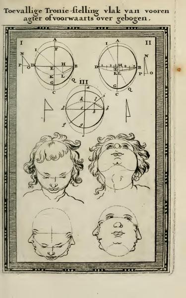 The text is about the accidental positioning of a face, viewed from the front but bent either backward or forward. It suggests considerations for capturing such angles in art.