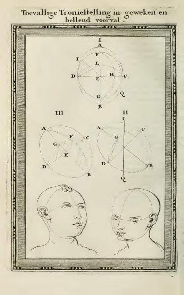 The text presents a title referring to techniques in facial representation focusing on perspective changes. It discusses the visualization of faces with geometric diagrams and sketches.