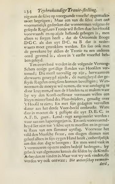 One should understand the previous composition; however, one of them reminds us that when setting a face according to the said rule, with the head bent forward and inclined, one must ensure that the horizontal arc from D.G.C. to D.C. must be drawn downward towards B. This applies similarly when the face is turned in another direction as illustrated in the first proposition.