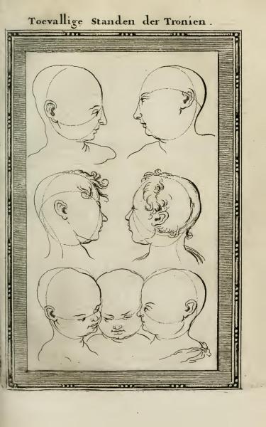 Accidental Positions of the Faces Page Summary: The image contains an illustration labeled 'Accidental Positions of the Faces,' depicting various sketches of human heads from different angles. The drawings study both adult and child profiles, focusing on diverse facial positions. << Go to previous page Go to Beginning of this Book Go to Index of this Book's pages Go to list of Books Go to next page >>