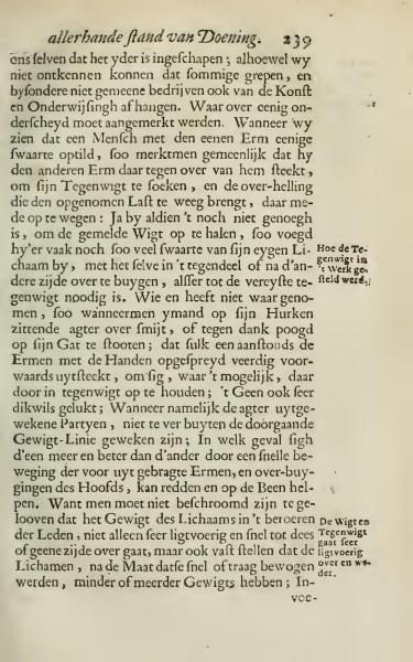 One can indeed create the impression that everyone is skilled; although we cannot deny that certain movements and particular uncommon activities also depend on Art and Instruction. An important distinction should be made about this. When we see a person lifting a weight with one arm, we commonly notice that they extend their other arm for balance, to seek their counterweight, and to counterbalance the weight they have lifted. If just lifting the weight is not enough, they often add the weight of their own body, leaning in the opposite or the same direction as needed for the counterbalance. Who hasn’t noticed that when someone falls backward while sitting on their haunches or tries in vain to rise, they inevitably extend their arms forward to stabilize themselves as much as possible? This often succeeds, especially when the back parts are not too far from the weight-bearing line. In such cases, some individuals fare better than others by quickly moving their outstretched arms and adjusting the head to recover and stand up again. One shouldn’t be reluctant to believe that the body’s weight, in moving the limbs, not only shifts easily and quickly from side to side, but also asserts that the body depending on whether moved quickly or slowly, has more or less weight.
