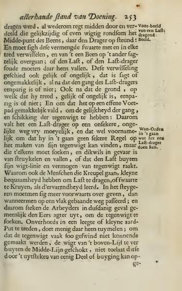 The weight is carried, and again precisely through the middle, divided equally or proportionately around the pivot point of the leg, where the bearer stands. A model must change this balance with every step, transferring smoothly from one leg to another; otherwise, either the load or the carrier would fall. This transfer occurs uniformly or unevenly, which means easily or with difficulty, depending on the step of the bearer. This also depends on whether the ground is level or uneven. Therefore, on a flat path, moving is easier because the balance of the step is maintained. However, on an uncertain, uneven path, it is difficult for the carrier to find a stable rule for maintaining their balance, so they frequently search and often are in danger of stumbling or falling if the load exceeds their balance capacity. This is why people who limp have less capacity to carry loads or manage weight, as experience teaches. When climbing, more forward projection is needed than when walking on a flat, paved path; thus, workers in such cases generally extend the rear for balance. Unexpectedly stepping into a ditch or small pit causes many to stumble because balance cannot be quickly restored when the top body's weight is significantly displaced beyond the central line, preventing a compensatory adjustment by extending some part or bending.