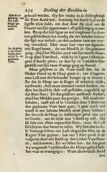 You further observe in this example, how the Image leans towards the lighter side, to thereby make the weight of its Taken Load even to that side. And to make this happen more lightly and fittingly, it is necessary that the loaded Shoulder raises itself somewhat; and the other is slightly lowered. Here, one must learn a general Rule, that a Person in their usual manner, always directs the Center of their greatest weight to the Foot which they plant on the Ground in steps; and there they support themselves in the middle Moment of their two-Legged walk.
