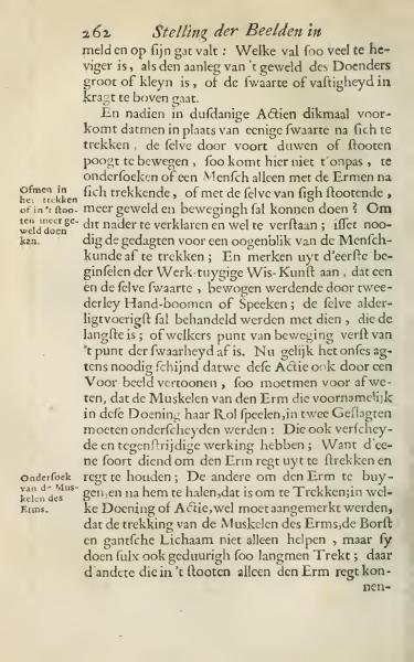And since in such Actions it often occurs that instead of some weight pulling towards them, the same person tries to move by pushing or thrusting forward, it is of interest to examine whether a person can alone create more force and movement by pulling towards themselves with their Arms, or by pushing them away? To explain this further and to understand it well; it is necessary to briefly move away from Anthropology; and to note from the basic principles of Mechanics, that one and the same weight, when moved by two types of levers or spokes, must be dealt with mostly according to their length; or from which point of motion it deviates from the point of gravity. Though it seems essential to illustrate this Action by an example, it is necessary to know beforehand, that the Muscles of the Arm which chiefly play their Role in this Action, must be divided into two Distinctions: Those also have different and contradictory functions; For one type serves to stretch and hold the Arm straight; The other to bend the Arm and draw it back, which equates to Pulling; in which Action or Movement, it must be noted, that the pulling of the Muscles of the Arm, the Chest, and the whole Body not only assist, but they do so continually as long as one Pulls; while the other functions only in pushing to keep the Arm straight.