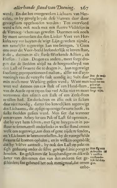 It was observed that the shifted body of Hercules, and consequently both these men, were thereby conveniently supported. Additionally, a faint middle line was also indicated in the illustration. It should also be noted that the left foot of Hercules, being situated outside of the weight line, can provide a considerable counterbalance. What is particularly instructive about this example is that in all forceful actions, such as lifting, carrying, and others, it is crucial to ensure that the figures are proportionally counterbalanced according to the height and weight of the load they are to bear, as necessary for the required motion. Less or more action may be seen; for one knows that to lift a stick or a handstone from the earth does not require as much action as one would need to lift a beam or a tombstone. Consequently, it is not necessary to visibly illustrate the clear counterbalance of the body that results from any such weight, in similar depictions. One observes that when an experienced worker is to pick up a package or load, he instinctively bends and positions himself, first examining in what stance and with what counterbalance, shifting his body to one side or another, he can manage the proposed weight; and in whatever moment he encounters it, he also picks up the load and tries his best to keep himself under the same weight line. It often happens that one performs this skillfully and more frequently better than another; so it also often happens that one fails.