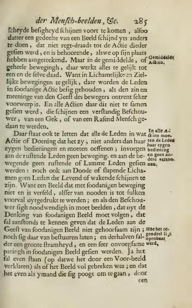 "Sodanigen beweging" refers to specific types of movements or actions that are important in the context. The word "Beschouwer" translates to "observer" or "spectator," emphasizing the role of perception.