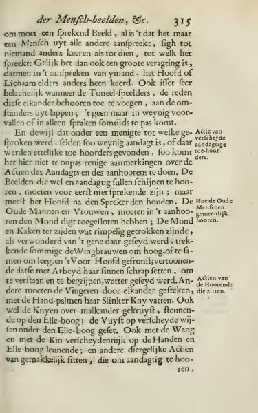 "Mensch-beelden" is translated to "The Representation of People." The word "Toe-hoorders" refers to attentive listeners or audience. The phrase "scharp fetten" translates to sharply focusing one’s mind or concentrating thoroughly.