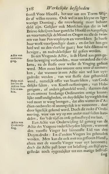 In a questioning action, the hand is not linked to a fixed movement but changes depending on the topic of the questioning. It should be noted once and for all that when in an action something cannot be well expressed, of whatever matter was dealt with, namely affairs of state, divine matters, art exercises, executions, or otherwise; that in and around such ordinances certain visible circumstances, and clear expressions should bring enough clarity, so that the deficiencies in actions can be perceived easily. However, this pertains to the regulation, which we will discuss another time, as time and our situation allow.