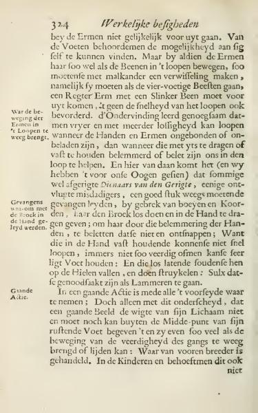 The arms do not equally move forward. From the feet, one must determine the ability to find balance. However, when the arms as well as the legs move during walking, they must alternate with each other. Specifically, they should move like four-legged animals, where the right arm moves with the left leg forward, which also enhances the speed of walking. Experience clearly shows that one can walk more freely and with ease when the hands and arms are unbound or unburdened, rather than when they are carrying or holding something, as this can hinder or obstruct us while walking. Hence, it is observed (and we have seen this with our own eyes) that some well-trained officers of justice would, when dealing with some escaped convicts, temporarily restrain them by freeing their breeches and giving them something to hold in their hand to prevent them from escaping; for while holding something in hand, they cannot run fast, at least not quickly enough to keep a very light foot. Should they release what they are holding, they would fall on their heels and stumble, being forced to move like lambs.
