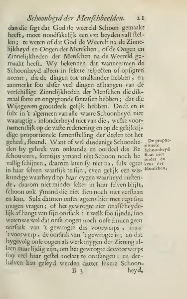 When one says that God has made the world beautiful, one must necessarily decide whether God shaped the world according to the senses and eyes of humans, or the eyes and senses of humans according to the world. We acknowledge that when beauty is only viewed in certain respects or aspects, considering how things are interrelated and noting that many aspects depend on the various senses of humans, which are often based on foolish and unfounded fantasies; philosophers largely agree on this. However, in general, genuine beauty does not truly exist in this way, particularly not in terms that rely largely on fixed reasoning and proportional composition of the parts to the whole. Even if such beauty appears unattractive to the observer due to lack of knowledge and judgment, it remains authentic in itself; just as a mathematical truth rests on its own truth, and remains indisputable, even if someone cannot see or understand it. This means we may rightfully ask: does not the shape depend inseparably on its cause? Knowing well that our eyes and senses are not the cause of the appearance of an object, but rather the object is the cause of appearance; hence, our eyes as tools of sight are merely passive to receive whatever their condition allows: and therefore it can be established that there is a certain beauty.