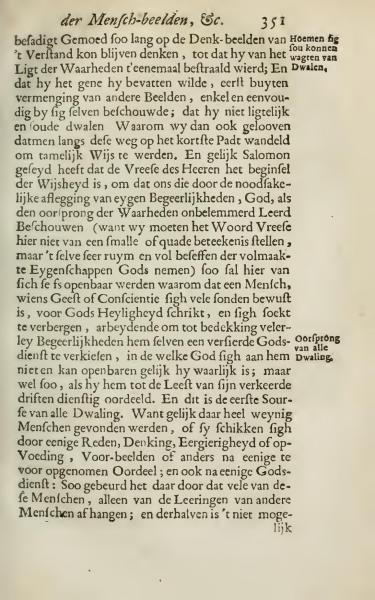 A focused mind can dwell on the imaginative thoughts of intelligence for so long until it is fully illuminated by the light of truths; and that which one wishes to comprehend is first understood without the mixture of other images, viewed simply and purely by oneself; so that one does not easily stray from the path. Therefore, we also believe that by following this path, we can become reasonably wise. As Solomon said that the fear of the Lord is the beginning of wisdom, because it teaches us to view God, the source of truths, without the impediment of personal desires. (We must not consider the word 'fear' in a narrow or negative sense here; rather, we should perceive it broadly and fully as the nature of God's perfect qualities.) This will reveal why a human, whose spirit or conscience is aware of many sins, trembles before God's holiness and seeks to hide, striving to choose an adorned form of worship, whereby God cannot reveal Himself as he truly is; yet He does so when one deems their wrong inclinations as beneficial. This is the first source of all error. For there are very few people who align themselves through reason, thought, ambition, or upbringing, examples or in another way according to some preconceived judgment; and also according to some religion: This is why many of these individuals depend solely on the teachings of others, making it impossible for them to avoid straying.