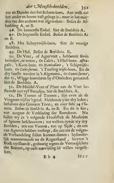 52. The toes, like the fingers, are five in number. Each toe has three sections, except the big toe, which has two, totaling 14 in all. See Illustrations A and B. This concludes the explanation of the bones. In the next chapter, we will consider the muscles, for which we have prepared three figures: one from the front, one from the side, and one from the back, which will be useful for the subsequent discussion, especially when comparing the illustrations of bones to the sketches provided outside the book on our indication.