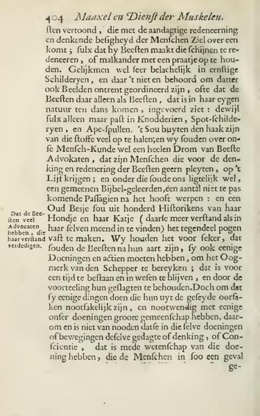Sometimes displayed are animals depicted with the attentive reasoning and thinking capacity of the human soul; such that he creates beasts that seem to reason, or converse among themselves. This is seen rather absurdly in serious paintings where figures appear animal-like in their nature, as it is inappropriate to the style intended for serious art. Scenes of this kind fit only within caricatures, satirical art, or comedic works featuring monkeys. It would be inappropriate to delve deeply into this material, and concerning our knowledge of humanity, we would find a legion of 'Animal Advocates', who are people keen to argue for the thinking and reasoning of animals. Among them, one might lightly find a common theologian, throwing some not-so-fitting biblical passages onto the subject; moreover, an old woman might attempt to support the idea, claiming more understanding from her dog and cat than in herself. We hold it certain that, if animals had their nature, they must have some actions and deeds to fulfill the purpose of the Creator; to exist for a time and remain in being, and through reproduction, maintain their continued existence. However, because they perform some acts necessary by the aforementioned causes, sharing commonality with our actions, it is not required that they have the same insight, thought, or conscience, akin to that of a human being.