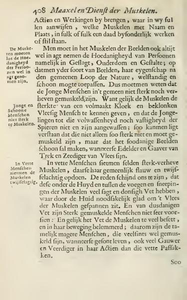 For overweight individuals, strongly elevated muscles are rarely seen, as their muscles typically appear weak and uncertain. The reason seems to be that these individuals have a lot of loose and soft fat between the skin and the muscles, making the skin necessarily smooth over them. Due to this, muscularly defined stout individuals are not favored: just as fat can overwhelm the muscles and restrict their movement; therefore, moderately thin people tend to be well-muscled, provided they live healthily, and they also tend to be quicker and more agile in their actions than those who are stout and sluggish.