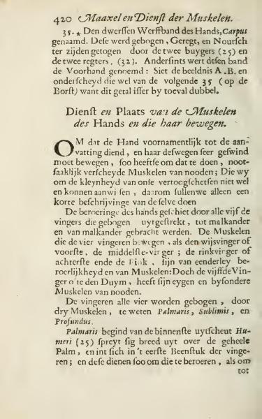35. The transverse band of the wrist, known as the Carpus. This is bent, straightened, and moved to the side by the two flexors (25) and the two extensors (32). This band is otherwise called the Forehand: See the illustration A.B. and distinguish it from the subsequent 35 (on the Chest) because this number is accidentally doubled.