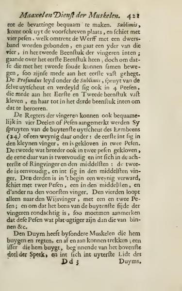 To make the grip effective. The muscle called Sublimis comes from the specified location and extends with four tendons that are bound across the wrist joint, and each of these four tendons inserts into the second phalanx of the fingers; they traverse over the first phalanx; yet because they must move together with the second, they are also attached to the first phalanx. The muscle Profundus lies underneath the Sublimis and similarly branches into four tendons, which adhere to the first and second phalanx and extend to the third phalanx to help move it.