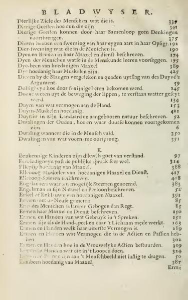 The text outlines various topics related to human anatomy and behavior, such as the nature of the animal soul, the characteristics of animal spirits, and the anatomical structures of the human body including thighs, legs, and elbows. It discusses how different body parts function in movement and speech, as well as the comparison of humans to animals in certain instincts. Furthermore, it mentions the intelligence of children and the significance of public speaking.