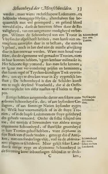 Translation Notes: "Tronie" refers to a head or face and is used here to denote facial features. "Ledematen" are limbs or extremities, emphasizing physical form. "Schoonheyd" translates to "Beauty."