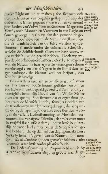 Just as there is no doubt that Adam and Eve were so beautifully shaped and defined within delicate proportions, as if by the utmost appropriateness of a wise creator; so it is claimed that sometimes, due to lack of human studies, artists produced images that concerning the exactness of the living images, which are apparent in their wooden posture and muscles, are so varied that one would doubt whether Adam would have been considered among the creatures made on the fifth day. If he found them in Paradise, unaware of how to classify them.