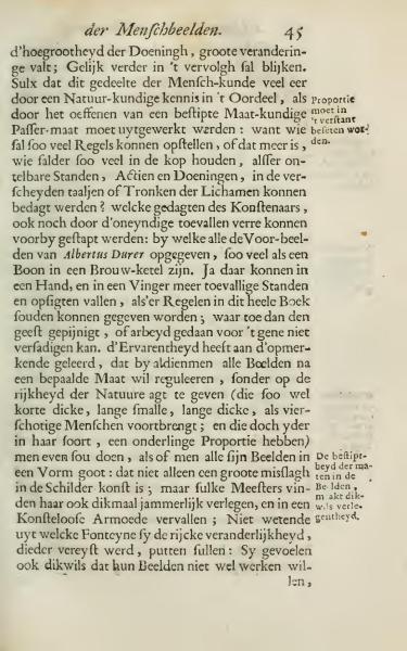 The importance and great changes in behavior become evident as follows. This section on human studies is judged more with scientific understanding than with precise mathematical ratios. Who can establish so many rules or remember them when there are countless postures, movements, and actions that can be conceived in the different languages of the human body? The thoughts of artists can be bypassed by endless circumstances, just like countless examples given by Albert Dürer. There can be as many incidental positions and perspectives of a hand or finger as rules could be provided in this book. Any effort made for what cannot be maintained is pointless. Experience has taught perceptive ones that to regulate all figures by a specific measure without considering the abundance of nature (which produces many varieties such as short thick, long thin, long thick, or robust people, each with their own proportionality) is as useless as casting all fine figures in a single mold. This results not only in an error in painting but leaves such masters often lamenting and falling into a shapeless poverty of art, not knowing from which source they should draw the rich variety required. They often feel their figures are not working well.