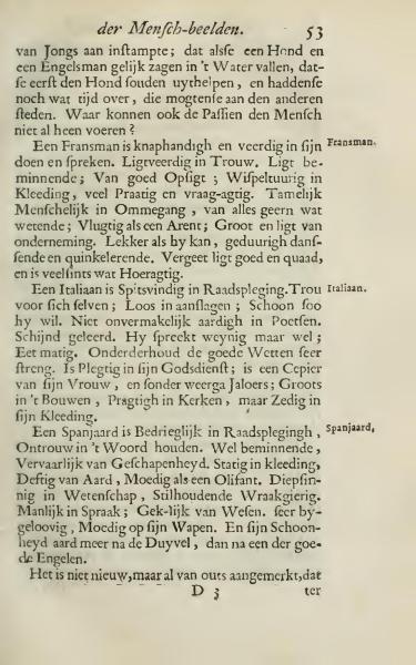It was instilled from a young age; that if a dog and an Englishman were seen falling into the water, they would first help the dog, and if they had some time left, they might assist the other. To what places can passions lead people? A Frenchman is skillful and agile in his actions and speech. Fickle in loyalty. Easily loving; With good appearance; Capricious in clothing, very talkative and inquisitive. Fairly sociable, knowing everything eagerly; Swift as an eagle; Great and light in enterprise. Fond of enjoyment as much as possible, constantly dancing and joyful. Easily forgets good and evil, and is often somewhat lecherous. An Italian is shrewd in consultations. Loyal Italian. to themselves; Devious in tactics; As beautiful as he wants. Not unpleasant in jokes. Appears learned. He speaks little but well; Eats moderately. Upholds the good laws very strictly. Is solemn in his religion; is a replica of his wife, and without equal jealous; Magnificent in constructions, splendid in churches; but modest in his attire. A Spaniard is deceitful in consultations, Spaniard, disloyal in keeping promises. Being beloved, fearsome in prowess. Stately in clothing, dignified in nature, brave as an elephant. Deep-thinking in science, perseverant in vengeance. Manly in speech; Crazy of nature. Often credulous, brave with his weapons. And his beauty is more akin to a devil than a good angel. It is not new, yet it has long been perceived, that