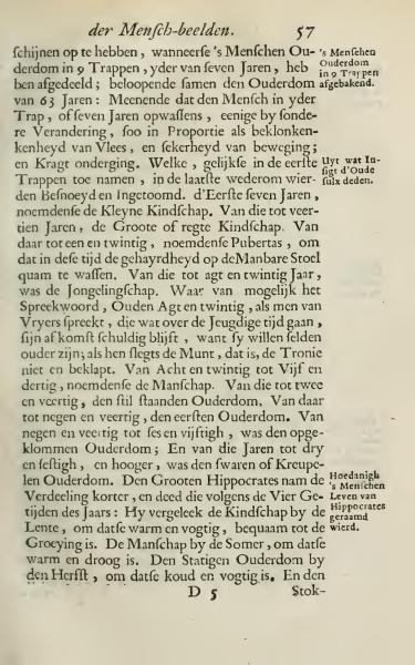 It appears when considering human age divided into 9 stages, each of seven years, together making up the age of 63 years: implying that in each stage of seven years upward, a person undergoes some distinct change, both in proportion as the firmness of the flesh and certainty of movement; and strength. The increases initially seen in these aspects are later curtailed and restrained. The first seven years are called childhood. From there to fourteen years, the major or true childhood. From there to twenty-one, referred to as adolescence, because in this time the readiness for the responsibilities of manhood becomes apparent. From there to twenty-eight years, is the period of youth. This may be reflected in the saying, 'Old at twenty-eight,' referring to individuals who, despite moving beyond their youth, remain tied to it, as they are reluctant to grow older, unless merely in appearance. From twenty-eight to thirty-five, is known as manhood. From there to forty-two, the steady state of adulthood. From there to forty-nine, the first stage of old age. From forty-nine to fifty-six, was the age of advancement; And from those years to seventy-three and beyond, was the serious or decrepit old age. The great Hippocrates divided these more succinctly, by comparing them to the four seasons: Childhood is compared to spring, being warm and moist, suitable for growth. Manhood to summer, being warm and dry. The steady state of adulthood to autumn, being cold and moist. And the decrepit old age to winter.