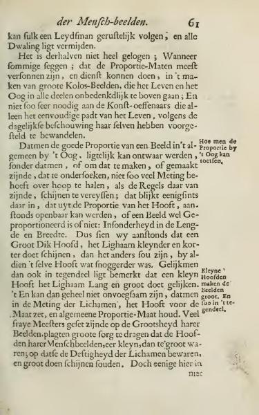 The good proportion of a statue can generally be perceived by the eye, and without much measurement needed to explore, as the rules suggest; it can be slightly revealed that, from the proportion of the head, it becomes immediately apparent if a statue is well-proportioned or not: particularly in length and width. Thus, we see at once that a large thick head makes the body appear smaller and shorter than it might otherwise, if that same head was somewhat more proportionate. It is also noted conversely that a small head makes the body appear long and large. It is thus not wholly inappropriate that, in measuring the body, the head is used as a measure, and general proportion is maintained. Many fine masters, being set on the greatness of their sculptures, took great care to ensure the heads of human figures were smaller rather than too large so that the dignity of the bodies is preserved, and they appear great. Yet, some do not follow this.