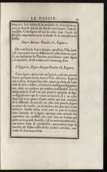 One can see in the Antique Satyr, located in the Ludovisi Villa, a nature different from those previously discussed, as explained in the preceding Plates: this figure has its beauties and is treated with much art.