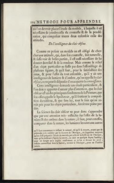 This understanding demands particular study, and one must pay even more attention since chiaroscuro is one of the principal foundations of Painting, whose effect attracts the Viewer, supports the composition of the tableau, and without which, all the care taken for particular objects would be wasted effort.